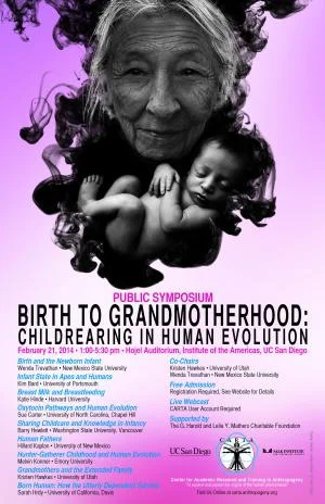 Feb. 21, 2014, Born Human: How the (almost) utterly dependent survive. For CARTA Symposium "Birth to Grandmotherhood: Childrearing in Human Evolution", Hotel Auditorium, Institute of the Americas, UC San Diego. Click here for full text of lecture "Development Plus Social Selection in the Evolution of 'Emotionally Modern' Humans"